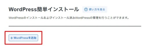 「WordPressを追加」をクリックします。クリックすると必要事項を入力する欄がでてきます。